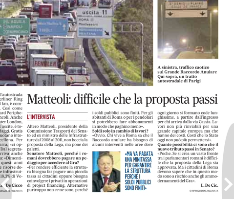15 novembre 2013 – Il Messaggero. Matteoli: difficile che la proposta passi