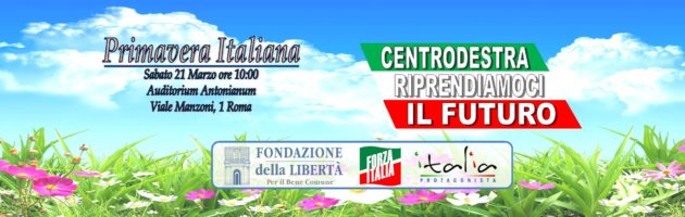 Il rilancio politico-programmatico di Forza Italia e del centrodestra sarà il tema di “Primavera italiana – Centrodestra, riprendiamoci il futuro” che si terrà sabato 21 marzo all’auditorium Antonianum di Roma. La manifestazione, organizzata dalle Fondazioni Italia Protagonista del se